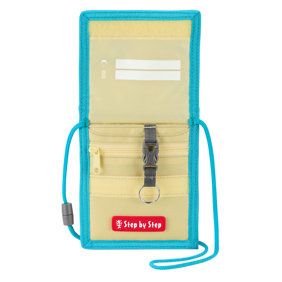 Im Step by Step Brustbeutel ist alles griffbereit. Das Taschengeld für das Pausenbrot findet seinen Platz im Münzfach mit Reißverschluss und die Busfahrkarte kann im Klarsichtfach untergebracht werden. Dank der Kordel können Kinder sich den Geldbeutel um den Hals hängen und so nicht verlieren. Der Haustürschlüssel kann an der abnehmbaren Schlüsselbefestigung angebracht werden. Im Inneren des Umhänge-Beutels befindet sich ein Feld, in den Name und Adresse eingetragen werden können. Das Material ist strapazierfähig und wasserabweisend mit PFC-freier Beschichtung. Die Herstellung erfolgt klimaneutral und vegan.