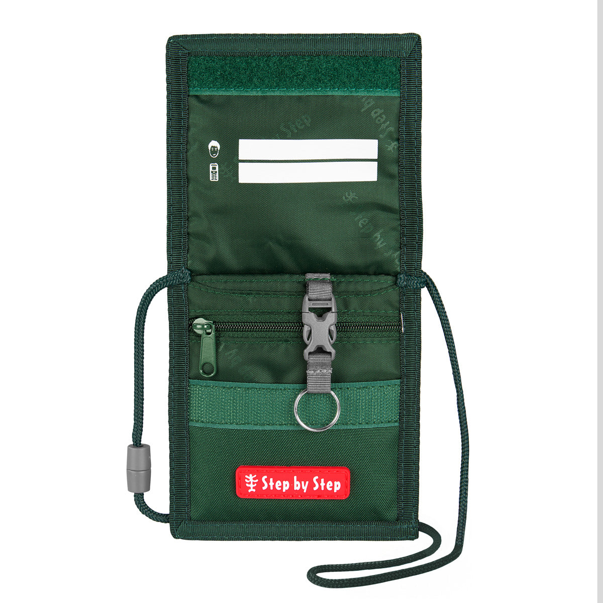 Im Step by Step Brustbeutel ist alles griffbereit. Das Taschengeld für das Pausenbrot findet seinen Platz im Münzfach mit Reißverschluss und die Busfahrkarte kann im Klarsichtfach untergebracht werden. Dank der Kordel können Kinder sich den Geldbeutel um den Hals hängen und so nicht verlieren. Der Haustürschlüssel kann an der abnehmbaren Schlüsselbefestigung angebracht werden. Im Inneren des Umhänge-Beutels befindet sich ein Feld, in den Name und Adresse eingetragen werden können. Das Material ist strapazierfähig und wasserabweisend mit PFC-freier Beschichtung. Die Herstellung erfolgt klimaneutral und vegan.