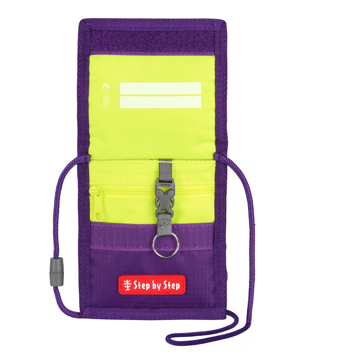 Im Step by Step Brustbeutel ist alles griffbereit. Das Taschengeld für das Pausenbrot findet seinen Platz im Münzfach mit Reißverschluss und die Busfahrkarte kann im Klarsichtfach untergebracht werden. Dank der Kordel können Kinder sich den Geldbeutel um den Hals hängen und so nicht verlieren. Der Haustürschlüssel kann an der abnehmbaren Schlüsselbefestigung angebracht werden. Im Inneren des Umhänge-Beutels befindet sich ein Feld, in den Name und Adresse eingetragen werden können. Das Material ist strapazierfähig und wasserabweisend mit PFC-freier Beschichtung. Die Herstellung erfolgt klimaneutral und vegan.