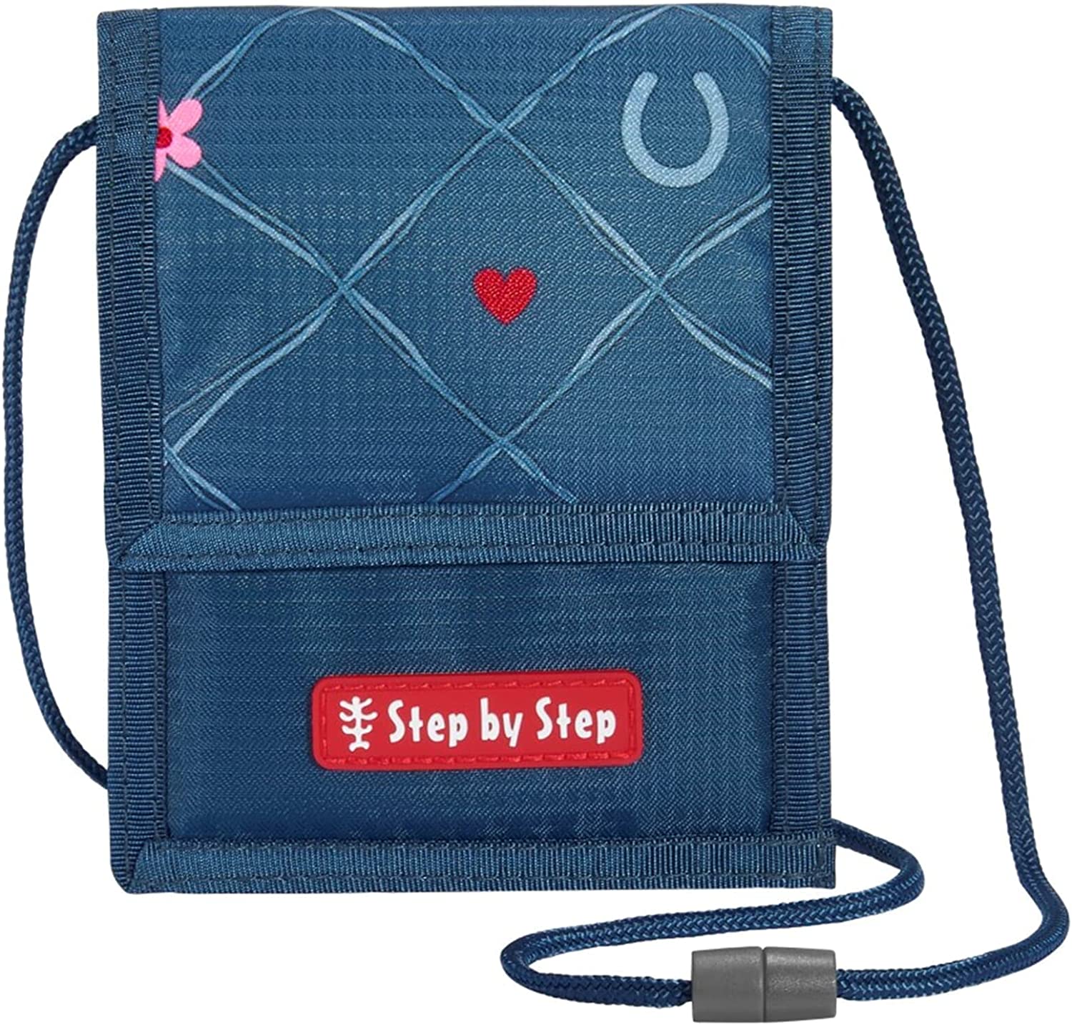 Im Step by Step Brustbeutel ist alles griffbereit. Das Taschengeld für das Pausenbrot findet seinen Platz im Münzfach mit Reißverschluss und die Busfahrkarte kann im Klarsichtfach untergebracht werden. Dank der Kordel können Kinder sich den Geldbeutel um den Hals hängen und so nicht verlieren. Der Haustürschlüssel kann an der abnehmbaren Schlüsselbefestigung angebracht werden. Im Inneren des Umhänge-Beutels befindet sich ein Feld, in den Name und Adresse eingetragen werden können. Das Material ist strapazierfähig und wasserabweisend mit PFC-freier Beschichtung. Die Herstellung erfolgt klimaneutral und vegan.