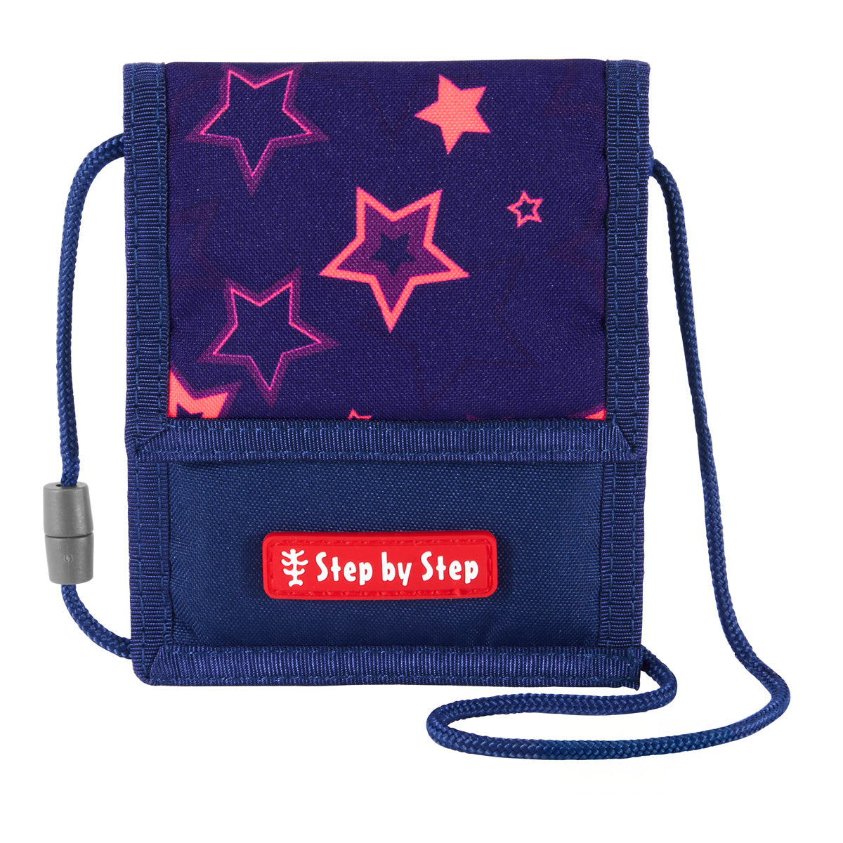 Im Step by Step Brustbeutel ist alles griffbereit. Das Taschengeld für das Pausenbrot findet seinen Platz im Münzfach mit Reißverschluss und die Busfahrkarte kann im Klarsichtfach untergebracht werden. Dank der Kordel können Kinder sich den Geldbeutel um den Hals hängen und so nicht verlieren. Der Haustürschlüssel kann an der abnehmbaren Schlüsselbefestigung angebracht werden. Im Inneren des Umhänge-Beutels befindet sich ein Feld, in den Name und Adresse eingetragen werden können. Das Material ist strapazierfähig und wasserabweisend mit PFC-freier Beschichtung. Die Herstellung erfolgt klimaneutral und vegan.