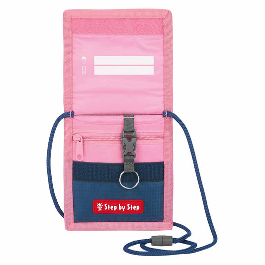 Im Step by Step Brustbeutel ist alles griffbereit. Das Taschengeld für das Pausenbrot findet seinen Platz im Münzfach mit Reißverschluss und die Busfahrkarte kann im Klarsichtfach untergebracht werden. Dank der Kordel können Kinder sich den Geldbeutel um den Hals hängen und so nicht verlieren. Der Haustürschlüssel kann an der abnehmbaren Schlüsselbefestigung angebracht werden. Im Inneren des Umhänge-Beutels befindet sich ein Feld, in den Name und Adresse eingetragen werden können. Das Material ist strapazierfähig und wasserabweisend mit PFC-freier Beschichtung. Die Herstellung erfolgt klimaneutral und vegan.