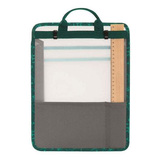 Die Heftbox schütz Hefte, Blöcke, Softcover-Bücher im DIN-A4-Format und Schnellhefte vor Eselsohren oder eingerissenen Einbänden. Die Heftaufbewahrung lässt sich je nach Inhalt auseinanderziehen oder zusammenschieben. Dank der 3 Fächer lässt sich das Schulmaterial einfach sortieren und schnell wiederfinden. Zusätzlich befindet sich eine Lasche auf der Rückseite, die ein Lineal (bis zu 30 cm) verstauen und schützen kann. Durch einen praktischen Tragegriff lässt sich die Box kinderleicht aus dem Schulranzen herausheben. Der Organizer verfügt über ein strapazierfähiges und wasserabweisendes Material mit PFC-freier Beschichtung. Die Herstellung erfolgt klimaneutral und vegan.