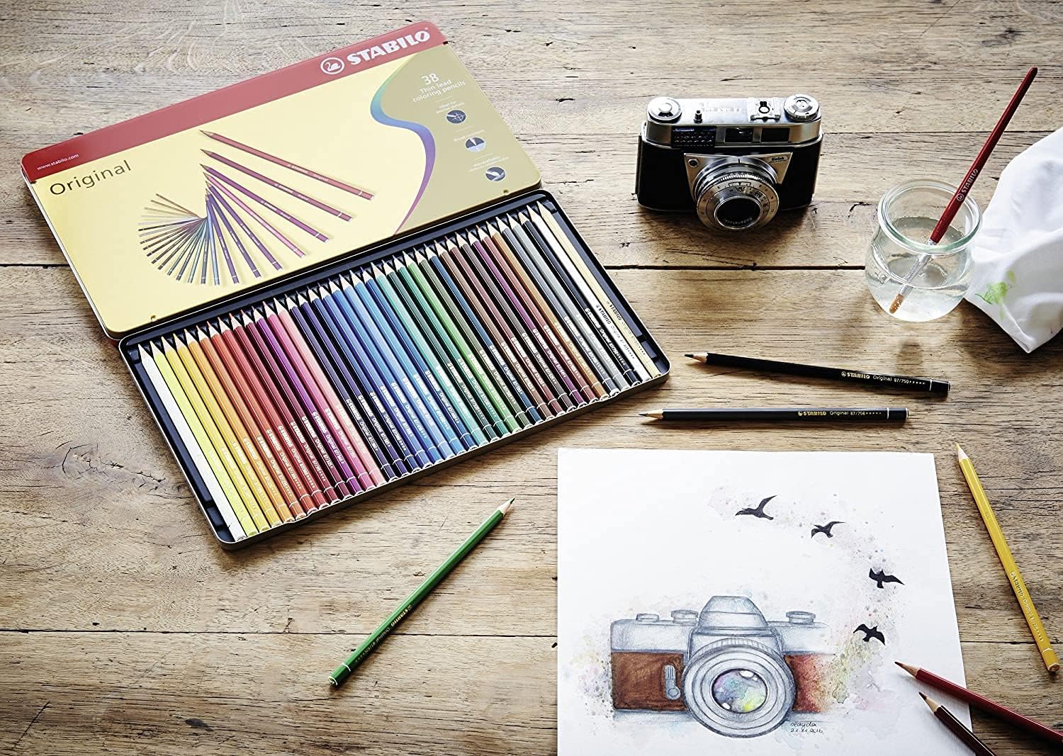 Das Stabilo Buntstifte-Set umfasst 38 verschiedene und zudem hochwertige Farben. Die Mine der Stifte sind dünn, hochelastisch und trotz ihrer Zartheit äußerst bruchsicher. Egal, ob es sich um feine Skizzen, Illustrationen oder technische Zeichnungen handelt, die Mine hat einen Linendurchmesser von 2,5 mm, was haarfeine und saubere Linien ermöglicht, die Präzision und Detailtreue in jeder Zeichnung gewährleisten. Während einige Techniken die Fähigkeit erfordern, Farben zu mischen und zu verblenden, bieten diese Stifte die Möglichkeit, Teile der Zeichnung zu vermalen, während die Konturen dennoch sichtbar bleiben. Ein weiterer Pluspunkt dieser Stifte ist ihre hohe Lichtechtheit und Farbbrillanz. Die Farben bleiben auch bei längerer Exposition gegenüber Licht lebendig und unverändert. Eine praktische Kennzeichnung der Lichtechtheit mit Sternen auf jedem Stift hilft den Künstlern, die Haltbarkeit der Farben einzuschätzen und die besten Optionen für ihre langfristigen Projekte auszuwählen. Darüber hinaus sind diese Stifte lichtpausecht, was sie zu einer idealen Wahl für alle macht, die ihre Zeichnungen in verschiedenen Situationen reproduzieren möchten. Die Farben bleiben stabil und verändern sich nicht, wenn sie auf fotografisches Papier übertragen werden, was eine präzise Reproduktion der Originalwerke ermöglicht.