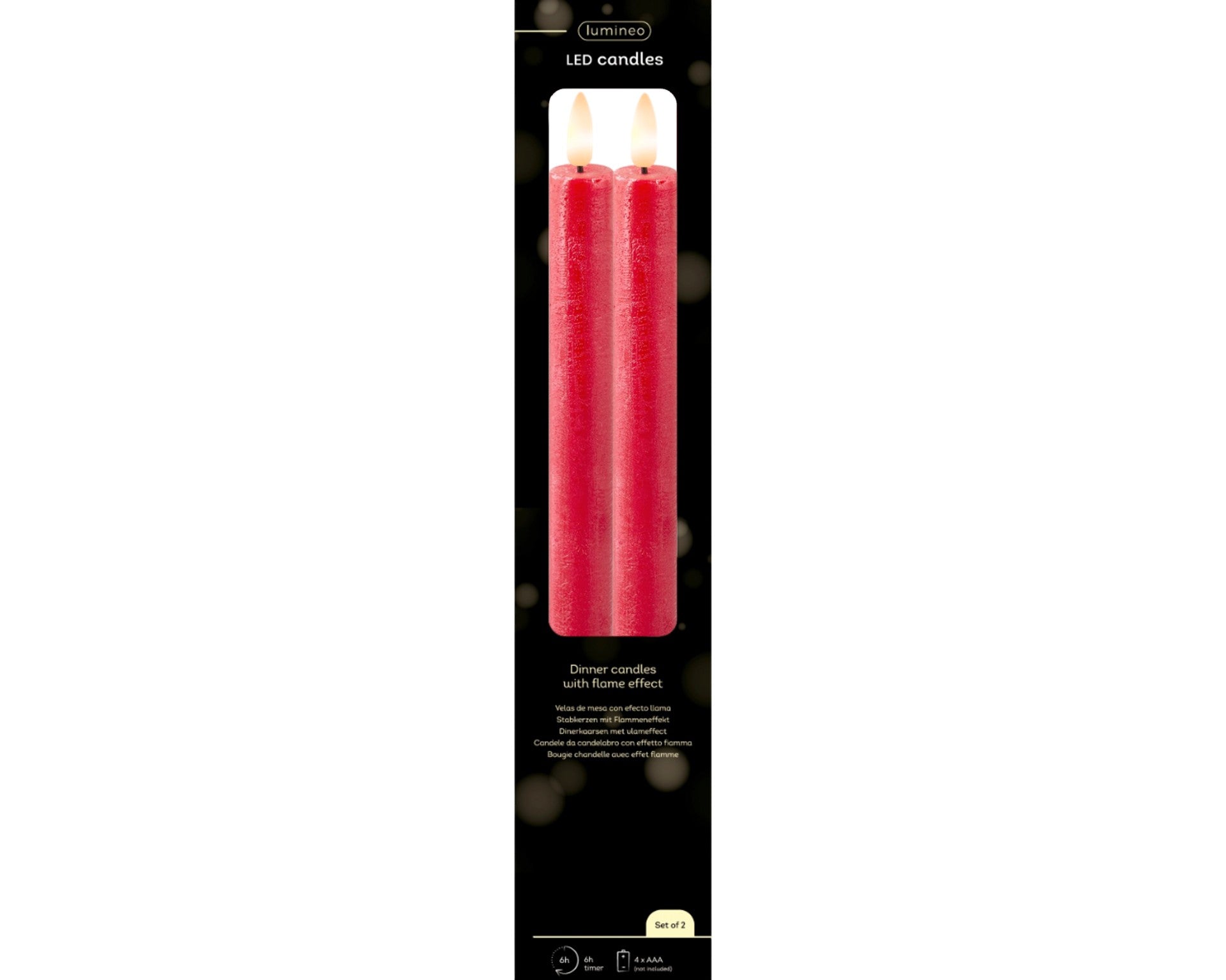 LED Spitzkerzen, 2er-Set Rot, warm weiß, 6h-Timer