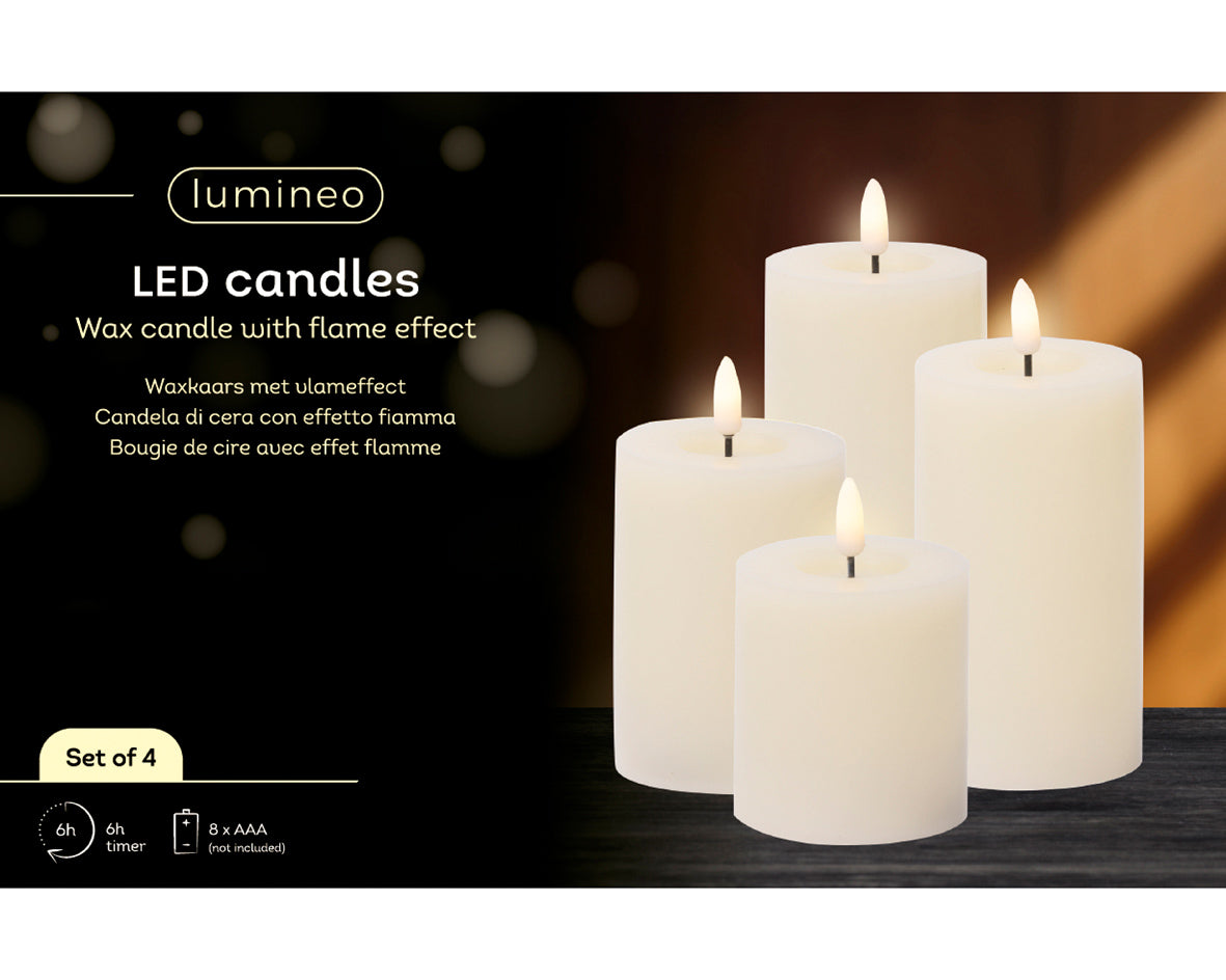 Lumineo LED Wachskerzen 4er-Set Weiß, warm weiß