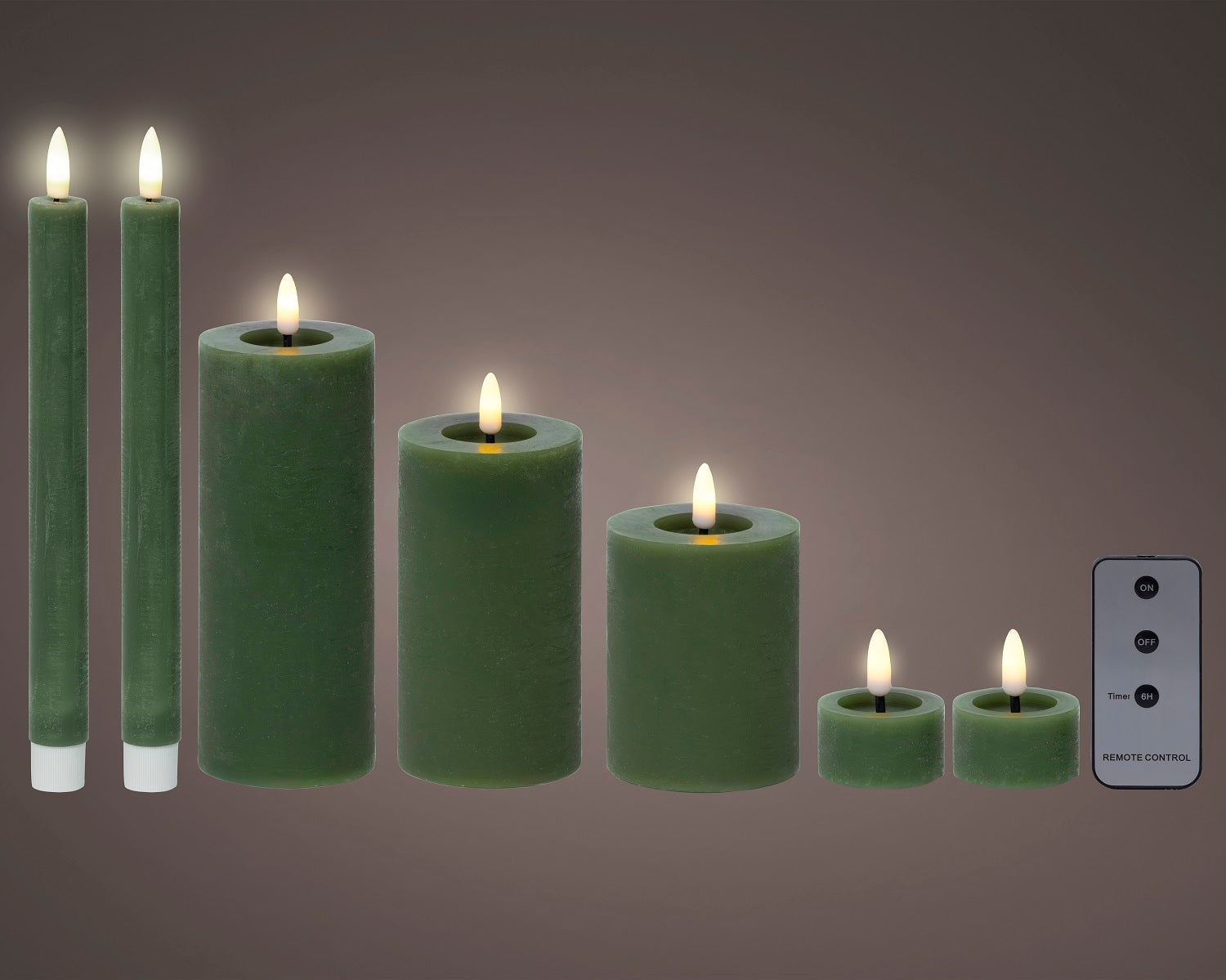 Lumineo LED Wachskerzen 7er-Set Grün, warm weiß