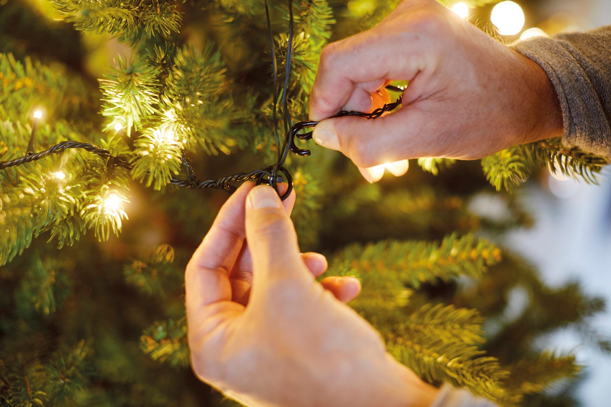 - mit einem Gummi-Ring, am oberen Ende der Lichterkette, an Baum zu befestigen