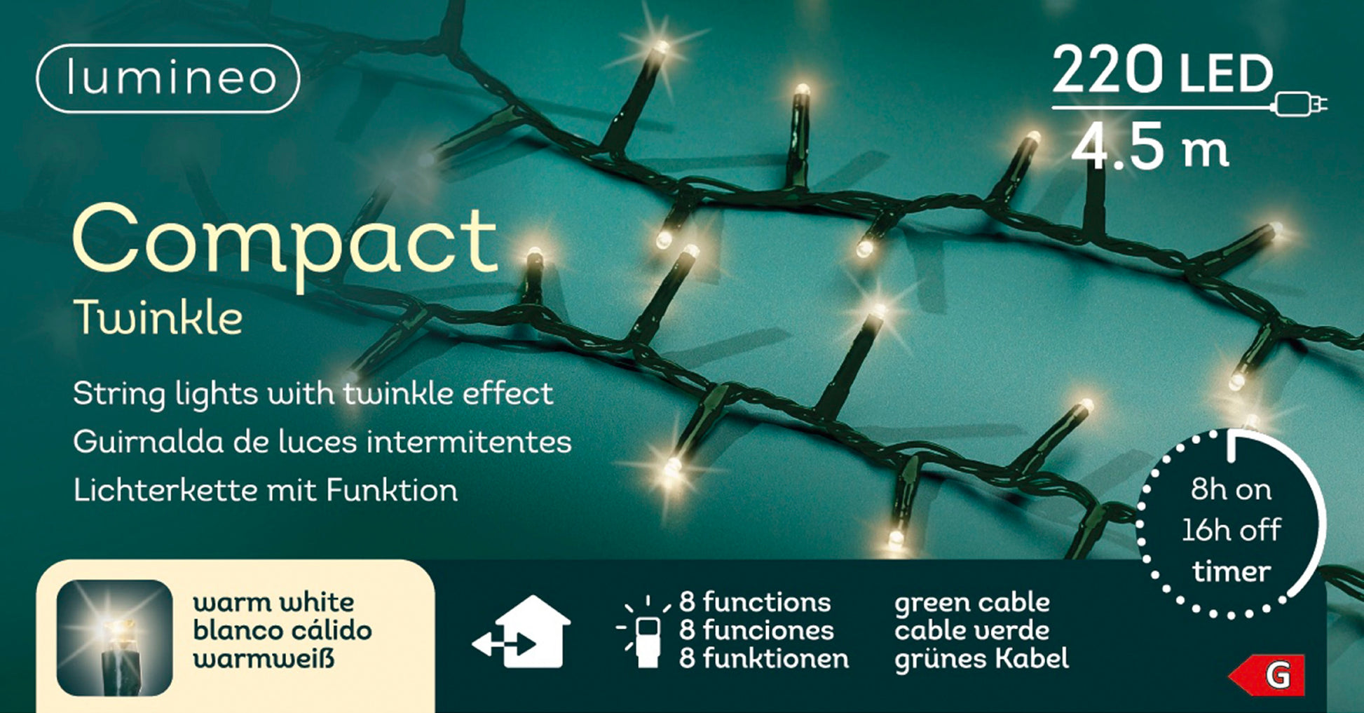 Lumineo Lichterkette COMPACT TWINKLE 220 LED 4,5 m, warm weiß