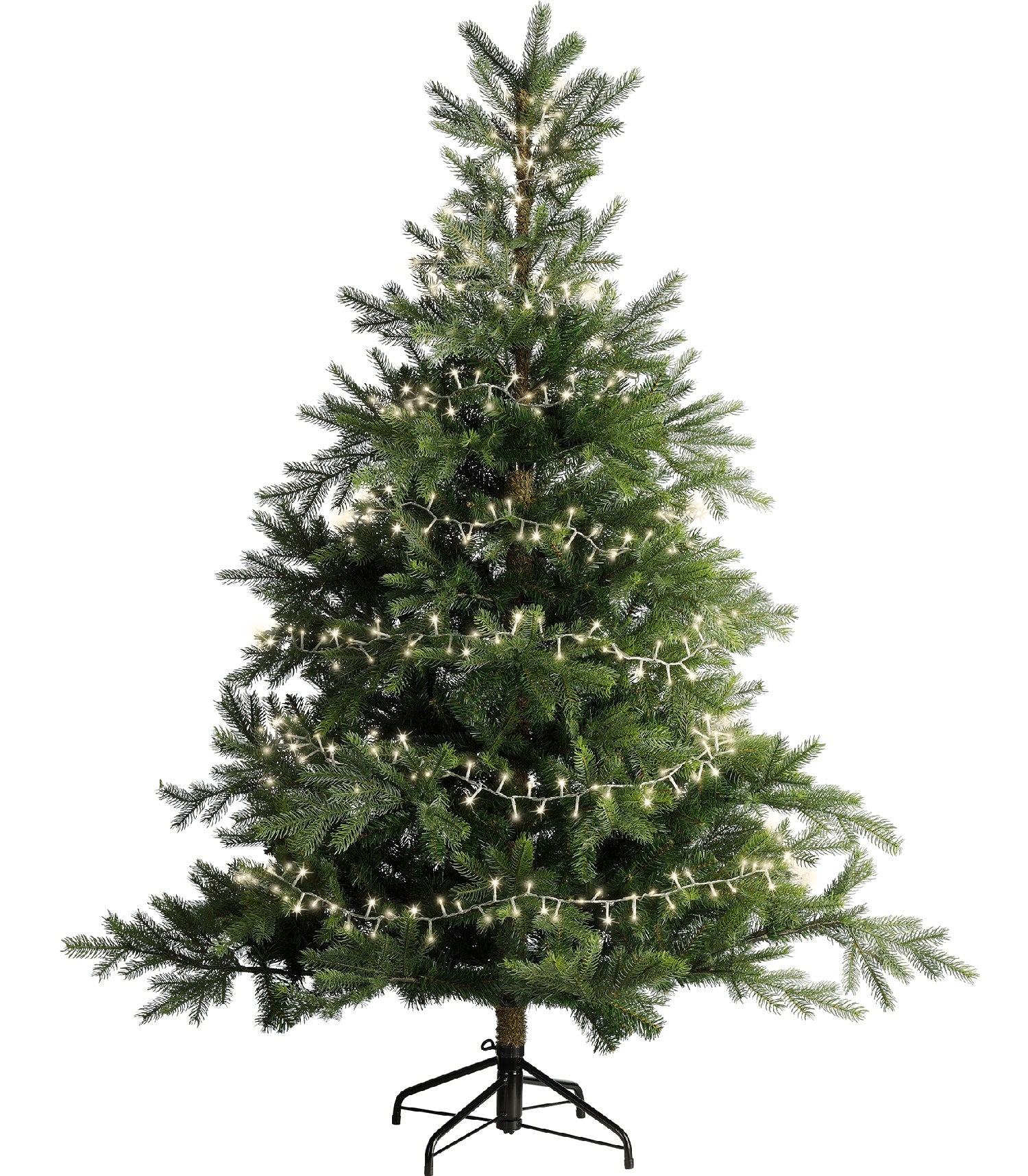 Die Lichterkette verfügt über 500 LEDs, welche in einem warm weißen Ton erstrahlen. Die 5 Stufen-Dimm-Funktion ermöglicht es, die Helligkeit nach Belieben anzupassen und somit die perfekte Atmosphäre zu schaffen. Dank der praktischen Timer-Funktion lässt sich die Lichterkette ganz bequem steuern, sodass sie automatisch 8 Stunden lang eingeschaltet und 16 Stunden ausgeschaltet ist. Diese Funktion spart nicht nur Energie, sondern sorgt auch dafür, dass die Lichterkette jeden Tag zur gleichen Zeit erstrahlt. Die Beleuchtung bietet zudem eine zusätzliche 5 m lange Zuleitung, wodurch die Lichterkette eine Gesamtlänge von 16 m besitzt. Mit dem IP44-Schutz ist sie Wetterbeständig und somit gegen Spritzwasser geschützt. Sie ist für den Innen- und Außenbereich geeignet. Für eine Baumhöhe von 150 - 180 cm geeignet. Mit Gütesiegel ausgezeichnet. Das Kabel ist transparent.