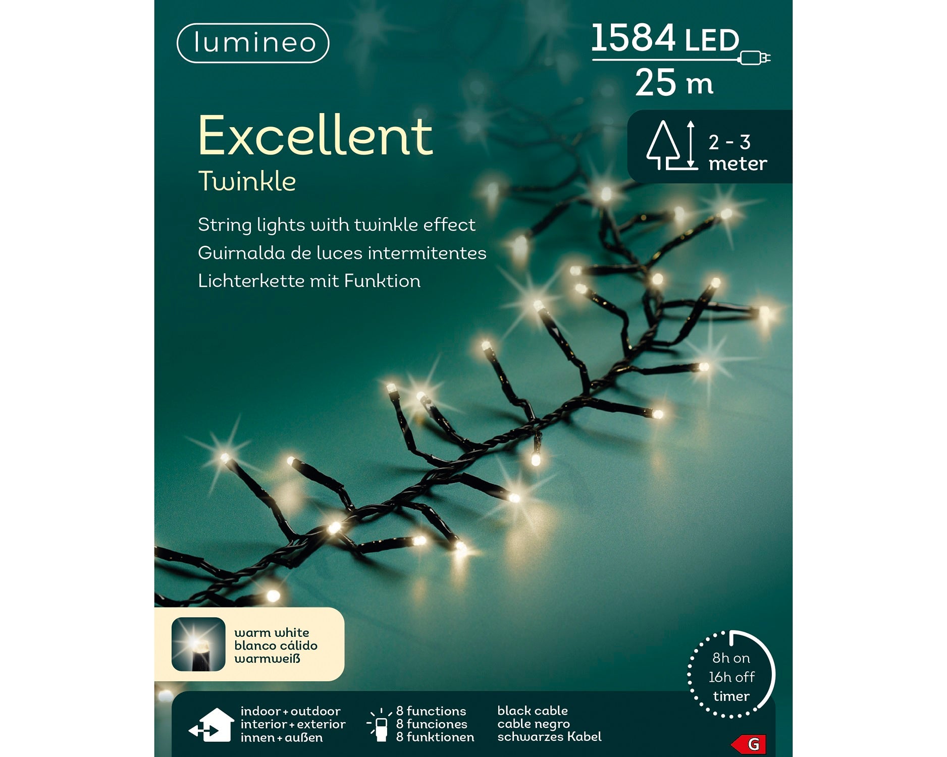 Lichterkette EXCELLENT TWINKLE 1584 LED 25 m warm weiß, schwarzes Kabel