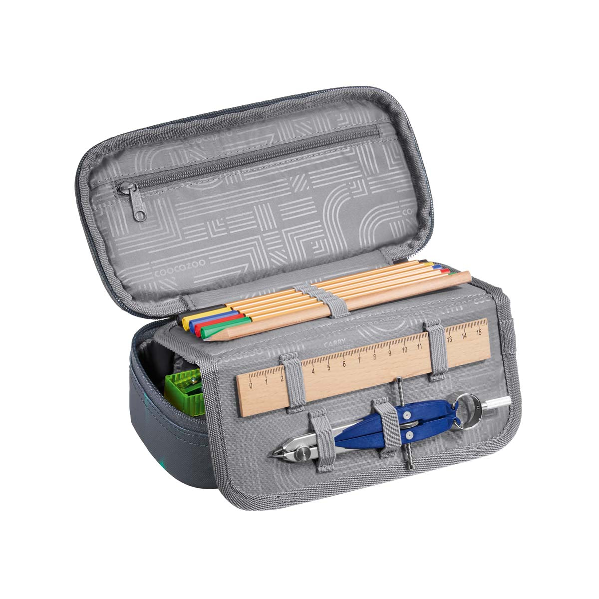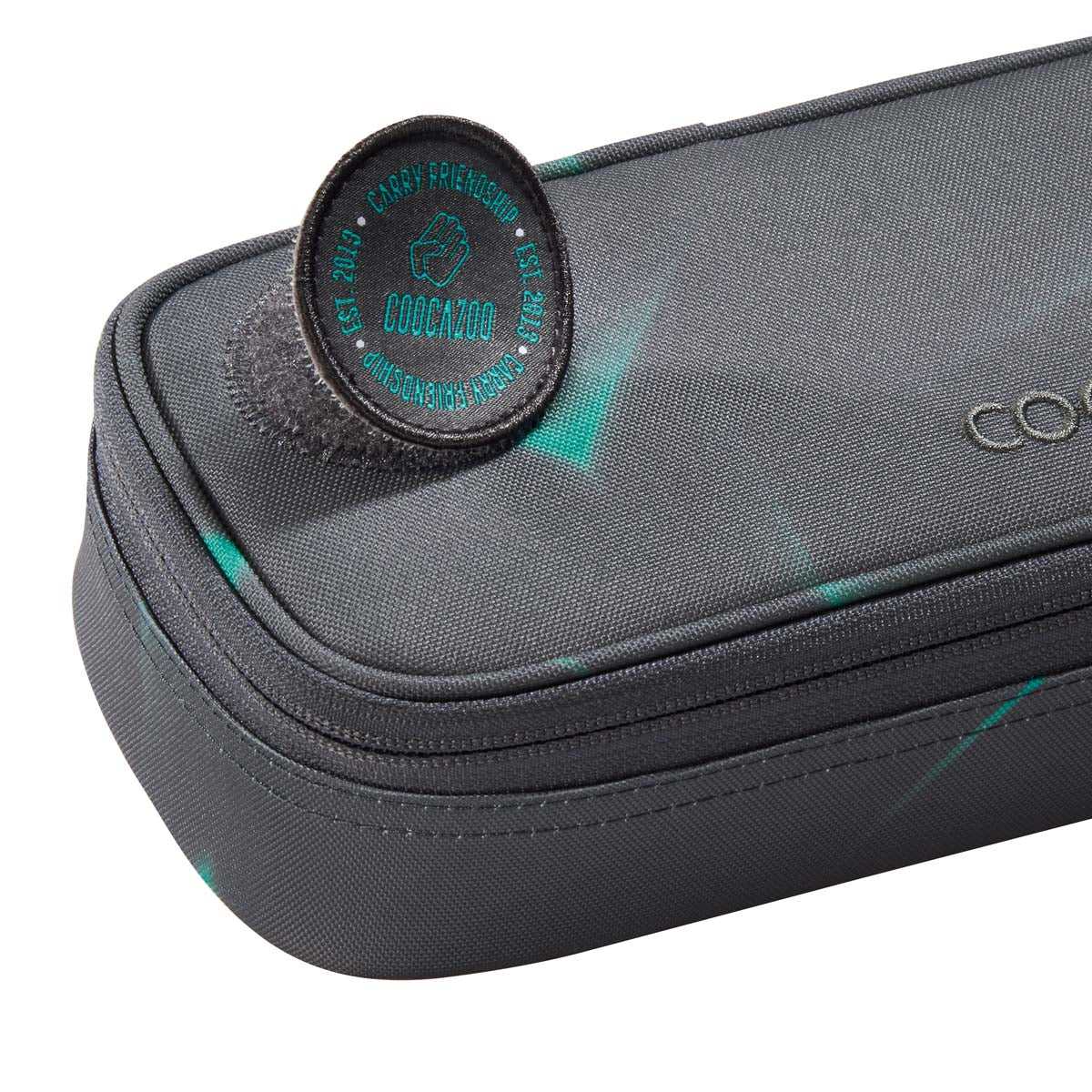 Das Pencilcase von Coocazoo bietet viel Platz für sämtliche Schreib- und Bastelutensilien. Aufgeteilt ist es in ein geräumiges Hauptfach, ein Reißverschlussfach, sowie ein Trennfach mit Organisationsfunktion, indem mehrere Stifte durch Gummibänder verstaut werden können. Damit Dein Kind den perfekten Durchblick im Schulalltag hat, ist ebenfalls ein separates Fach für einen Stundenplan integriert. Öffnen und schließen lässt es sich ganz einfach durch ein Reißverschluss-System. Mit austauschbarem Klett-Patch auf der Vorderseite. Die Herstellung erfolgt klimaneutral und umweltschonenden. Ein Mäppchen besteht aus 6 recycelten PET-Flaschen.