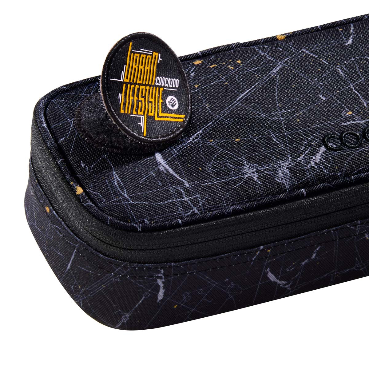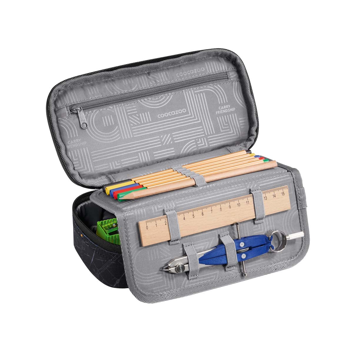 Das Pencilcase von Coocazoo bietet viel Platz für sämtliche Schreib- und Bastelutensilien. Aufgeteilt ist es in ein geräumiges Hauptfach, ein Reißverschlussfach, sowie ein Trennfach mit Organisationsfunktion, indem mehrere Stifte durch Gummibänder verstaut werden können. Damit Dein Kind den perfekten Durchblick im Schulalltag hat, ist ebenfalls ein separates Fach für einen Stundenplan integriert. Öffnen und schließen lässt es sich ganz einfach durch ein Reißverschluss-System. Mit austauschbarem Klett-Patch auf der Vorderseite. Die Herstellung erfolgt klimaneutral und umweltschonenden. Ein Mäppchen besteht aus 6 recycelten PET-Flaschen.