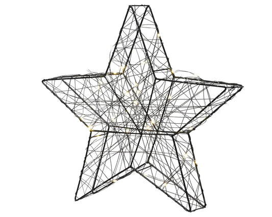 Metall-Stern schwarz 30 LED, 30 x 29 cm, warm weiß, batteriebetrieben