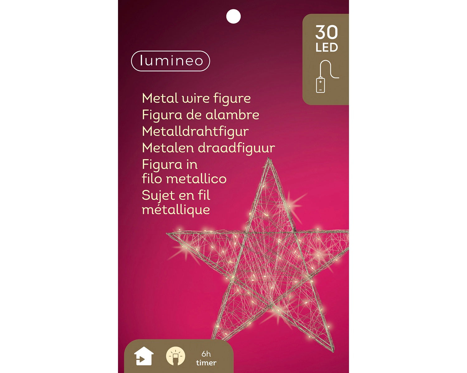 Der Metall-Stern erzeugt mit 30 warm weißen LEDs ein gemütliches und angenehmes Licht, das jeden Raum in eine festliche Atmosphäre taucht. Dank der praktischen Timer-Funktion lässt sich die Beleuchtung ganz bequem steuern, sodass sie automatisch 6 Stunden lang eingeschaltet und 18 Stunden ausgeschaltet ist. Er ist, mit der IP-20 Schutzklasse, ausschließlich für den Innenbereich geeignet. Die Zuleitung hat eine Länge von 30 cm. Die LEDs werden mit 3xAA Batterien betrieben (nicht im Lieferumfang enthalten) und sind somit nicht, an einer Steckdose, kabelgebunden. Vollständig aufgeladen leuchten die LEDs bis zu 48 Stunden.