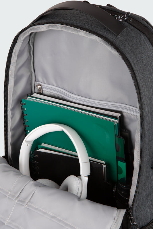- drei Hauptfächer mit 15,6-Zoll Laptopfach und mehreren Innentaschen