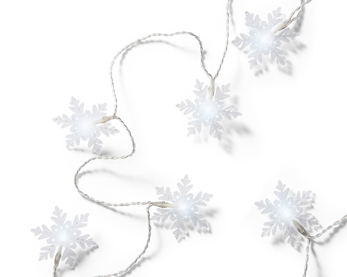 Schneeflocken-Lichterkette 24 LED 4,6 m Kalt Weiß, transparentes Kabel