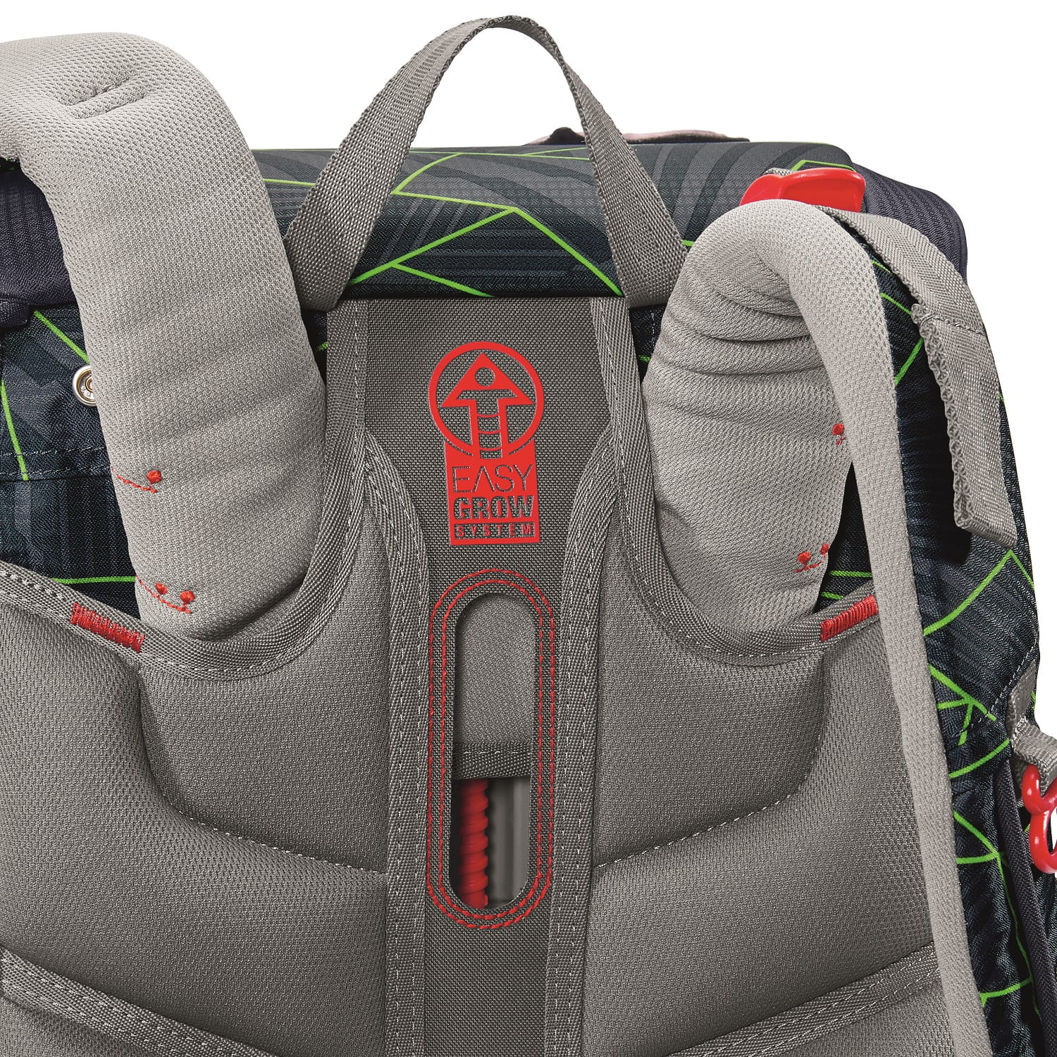 Der CLOUD ist speziell für Kinder von der 1. bis zur 4. Klasse entwickelt worden und ist das Leichtgewicht unter den Schulranzen. Durch das höhenverstellbare Tragesystem "Easy-Grow-Sytem" lässt sich der Ranzen individuell an die Körpergröße des Kindes anpassen (100 - 150 cm). Während die stabilen Beckenflossen das Gewicht gleichmäßig auf das belastbare Becken verteilen und somit für ein ergonomisches Tragen sorgen, bleiben die Arme dank verstellbarem Brustgurt frei. Das ergonomisch vorgeformte Rückenpolster aus atmungsaktivem Material ermöglichen einen bequemen Sitz, ohne dabei zu schwitzen und entlastet den Körper in jeder Wachstumsphase. Der Grundschulranzen verfügt über mehrere Fächer, sowohl innen als auch außen, die ausreichend Platz für Bücher, Hefte und andere Schulutensilien bieten. Die fest angenähten Seitentaschen bieten zusätzlichen Stauraum für Getränkeflaschen oder einen Regenschirm. Der Schulrucksack ist rundherum mit Reflektoren ausgestattet, die eine gute Sichtbarkeit im Straßenverkehr gewährleisten. Eine stabile Bodenwanne sorgt zudem für einen sicheren Stand des Ranzens. Das Öffnen und Schließen des Schulranzens wird durch die Fidlock-Magnetverschluss erleichtert.