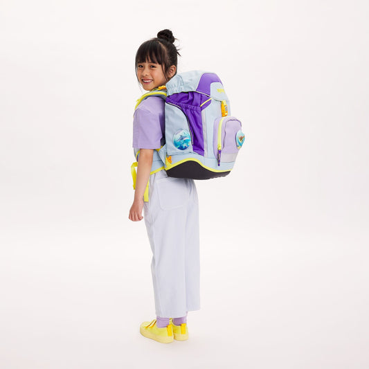 Der Ergobag PACK ist ein 6-teiliges Schulranzen-Set, das speziell für Kinder von der 1. bis zur 4. Klasse entwickelt wurde. Mit seinem einzigartigen Design und den funktionalen Eigenschaften ist er der optimale Begleiter für unsere ABC-Helden. Ein herausragendes Merkmal des Packs ist das höhenverstellbare Tragesystem "Your-Size-System". Damit lässt sich der Ranzen individuell an die Körpergröße des Kindes anpassen und ermöglicht so eine ergonomisch richtige Haltung beim Tragen. Dank der breiten, gepolsterten Beckenflossen und der gepolsterten Schulterträger bietet der Ranzen einen hohen Tragekomfort, der gerade bei längeren Schulwegen von großer Bedeutung ist. Auch an die Belüftung des Rückens wurde gedacht. Das atmungsaktive Rückenpolster sorgt für eine gute Luftzirkulation und verhindert ein unangenehmes Schwitzen.