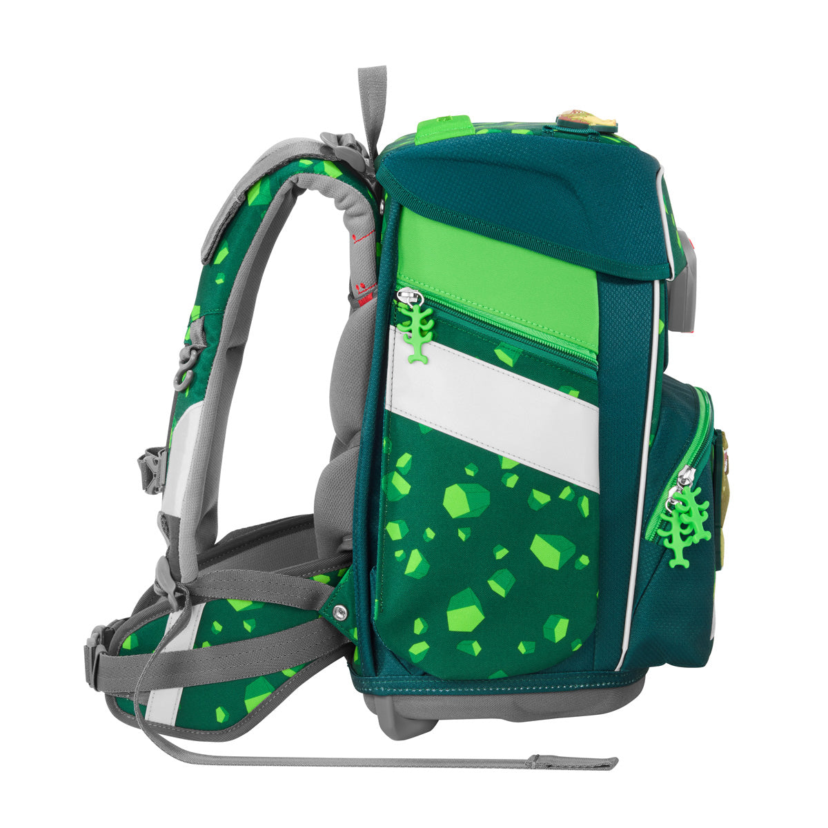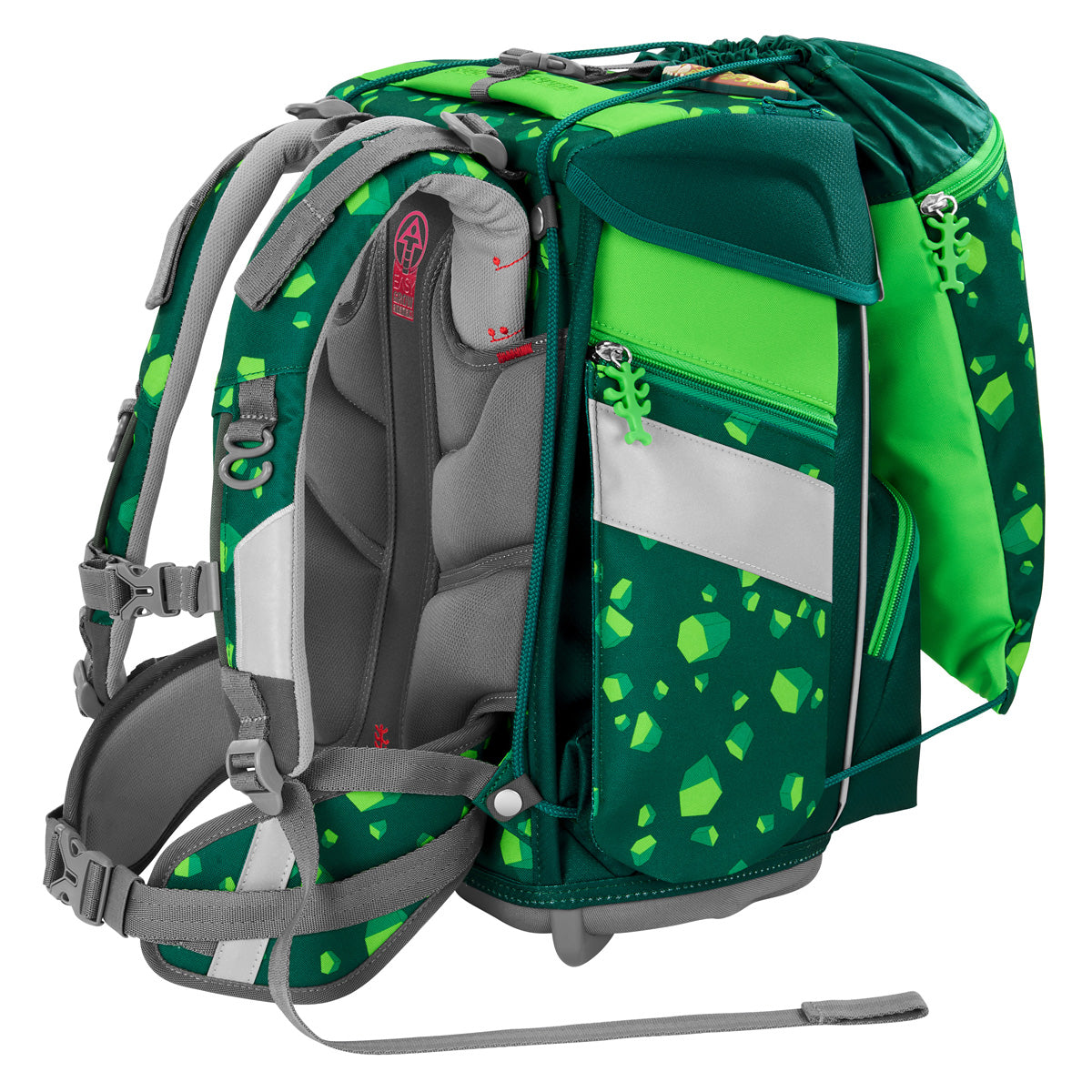 Der Schulranzen ist ideal für Grundschulkinder ab der 1. Klasse. Er ist ergonomisch, wächst mit und bietet viel Platz für alles, was im Schulalltag wichtig ist. Dank des EASY-GROW-SYSTEMY lässt sich die Rückenlänge ganz einfach anpassen - so passt der Ranzen über mehrere Jahre hinweg, auch wenn das Kind wächst (anpassbar an eine Körpergröße von 100 - 150 cm). Für extra Tragekomfort sorgen die gepolsterten Schultergurte, ein Hüftgurt sowie der verstellbare Brustgurt. So sitzt der Ranzen bequem und entlastet den Kinderrücken. Mit einem Volumen von 20 Litern bietet der SPACE genug Platz für Bücher, Hefte, Brotdose & Co. Die isolierte Fronttasche hält das Pausenbrot länger frisch. In den Seitentaschen, mit Reißverschluss, lassen sich Trinkflasche oder Regenschirm gut verstauen. Durch kleine Öffnungen, in den Seitentaschen, kann Wasser leicht abfließen - praktisch an nassen Tagen. Das Material ist wasserabweisend und der feste Boden schützt den Inhalt zusätzlich. Rundum reflektierende Flächen sorgen dafür, dass Kinder auch im Dunkeln besser gesehen werden. Ausgestattet ist er mit zwei Magnet-Motiven "MAGIC MAGS", die vorne am Ranzen angebracht werden können.