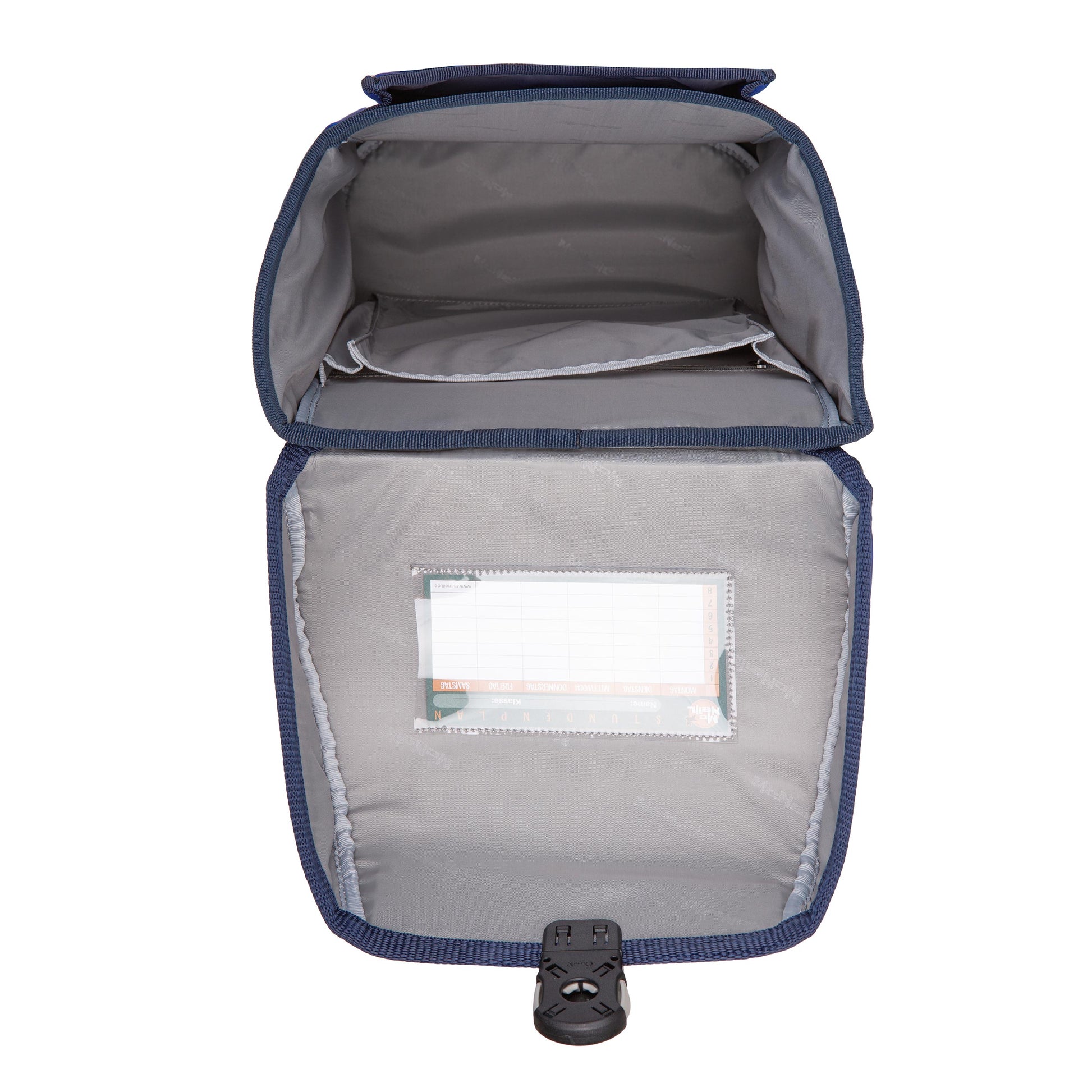 - 1 Bücherfach im Hauptfach, Integrierte Vortasche, 2 Seitenfächer mit Reißverschluss