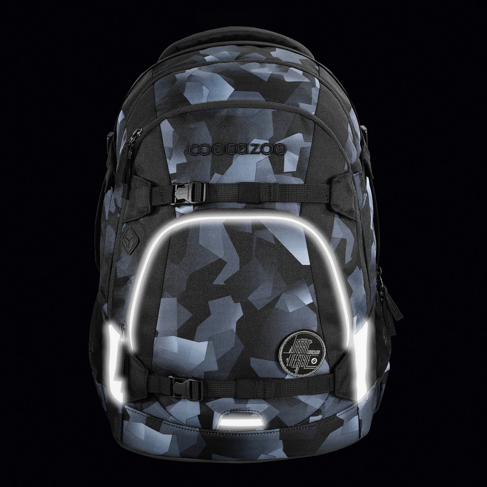 MATE - der Allrounder. Geeignet ist der Rucksack ab der 5. Klasse. Mehrere Fächer ermöglichen es, alle Schulutensilien geordnet und griffbereit zu verstauen: zwei Hauptfächer mit einem Bücherfach, ein Organizerfach, eine Fronttasche und zwei Netz-Außentaschen. Durch das Easy-Grow-System lässt er sich problemlos auf die aktuelle Rückenlänge einstellen (Körpergröße von 135 - 180 cm). Ein einfacher Drehmechanismus, mit entsprechender Skala, ermöglicht die Höhenverstellung der Schulterträger (während das Kind den Rucksack trägt). Durch die Riemen auf Schulterhöhe und die Kompressionsriemen an den Seiten lässt sich das Gewicht nah am Rücken verteilen. Um eine optimale Stabilisierung und Entlastung der Schultergelenke zu gewährleisten, verfügt der Ranzen über einen höhen- und längenverstellbaren Brustgurt. Durch diese Funktion wird das Gewicht gleichmäßig verteilt und die Schultern entlastet. Darüber hinaus sorgt die Pull-Forward Funktion des breiten Hüftgurtes dafür, dass das Gewicht des Ranzens auf das stabile Becken deines Kindes gelagert wird. Das atmungsaktive und gepolsterte Rückenteil ermöglicht eine gute Luftzirkulation. Durch den standfesten sowie gepolsterten Rucksackboden, bekommt der Rucksack einen festen Stand. Reflektierende Flächen sorgen für mehr Sichtbarkeit auf dem Schulweg. Für noch mehr Sicherheit am Schulweg kann ein zusätzliches LED-Stecklicht an der Schultasche befestigen werden. Die Herstellung erfolgt PVC-frei, sowie aus 34 recycelten PET-Flaschen (0,5 l). Wasserabweisend, Polyester mit 100% PFC-freier und bluesign-zertifizierter Beschichtung.
