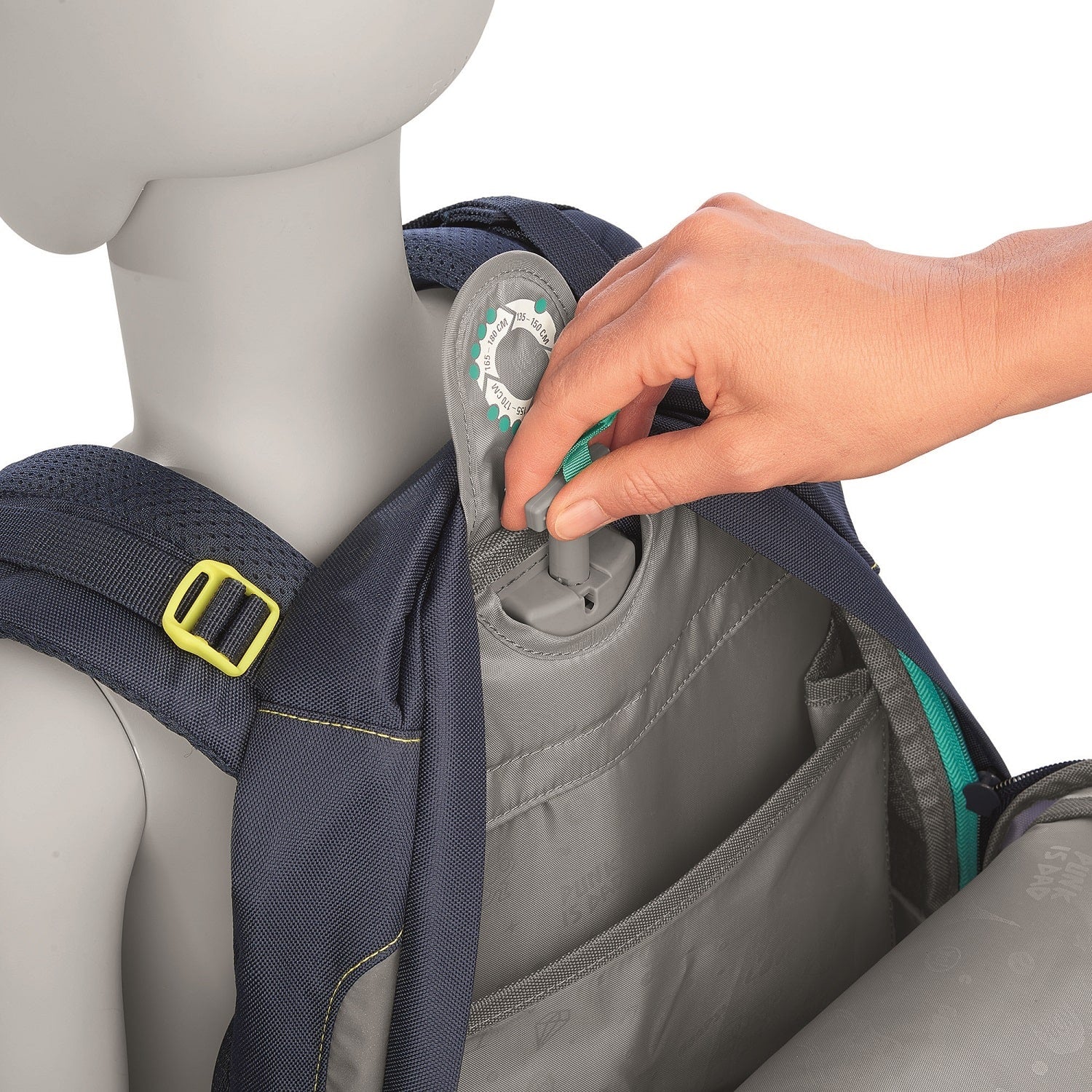 - Lageverstellriemen für Anpassung an den Rücken, sowie Höhenverstellbarer Brustgurt und abnehmbarer Hüftgurt