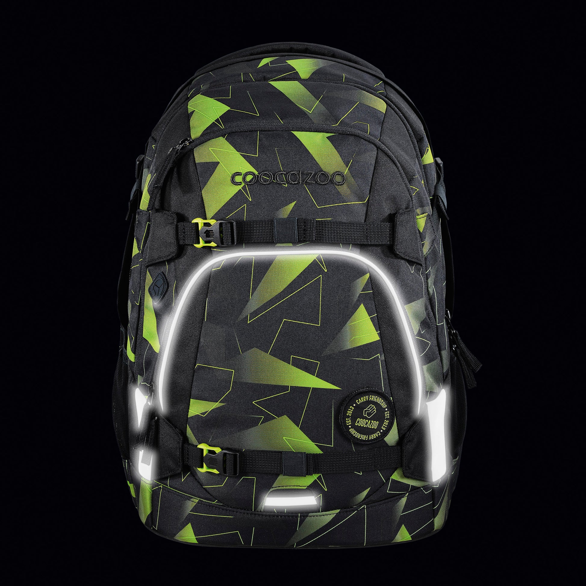 MATE - der Allrounder. Geeignet ist der Rucksack ab der 5. Klasse. Mehrere Fächer ermöglichen es, alle Schulutensilien geordnet und griffbereit zu verstauen: zwei Hauptfächer mit einem Bücherfach, ein Organizerfach, eine Fronttasche und zwei Netz-Außentaschen. Durch das Easy-Grow-System lässt er sich problemlos auf die aktuelle Rückenlänge einstellen (Körpergröße von 135 - 180 cm). Ein einfacher Drehmechanismus, mit entsprechender Skala, ermöglicht die Höhenverstellung der Schulterträger (während das Kind den Rucksack trägt). Durch die Riemen auf Schulterhöhe und die Kompressionsriemen an den Seiten lässt sich das Gewicht nah am Rücken verteilen. Um eine optimale Stabilisierung und Entlastung der Schultergelenke zu gewährleisten, verfügt der Ranzen über einen höhen- und längenverstellbaren Brustgurt. Durch diese Funktion wird das Gewicht gleichmäßig verteilt und die Schultern entlastet. Darüber hinaus sorgt die Pull-Forward Funktion des breiten Hüftgurtes dafür, dass das Gewicht des Ranzens auf das stabile Becken deines Kindes gelagert wird. Das atmungsaktive und gepolsterte Rückenteil ermöglicht eine gute Luftzirkulation. Durch den standfesten sowie gepolsterten Rucksackboden, bekommt der Rucksack einen festen Stand. Reflektierende Flächen sorgen für mehr Sichtbarkeit auf dem Schulweg. Für noch mehr Sicherheit am Schulweg kann ein zusätzliches LED-Stecklicht an der Schultasche befestigen werden. Die Herstellung erfolgt PVC-frei, sowie aus 34 recycelten PET-Flaschen (0,5 l). Wasserabweisend, Polyester mit 100% PFC-freier und bluesign-zertifizierter Beschichtung.