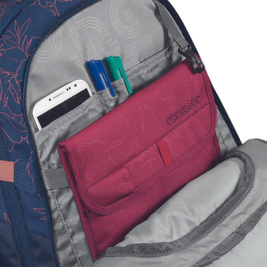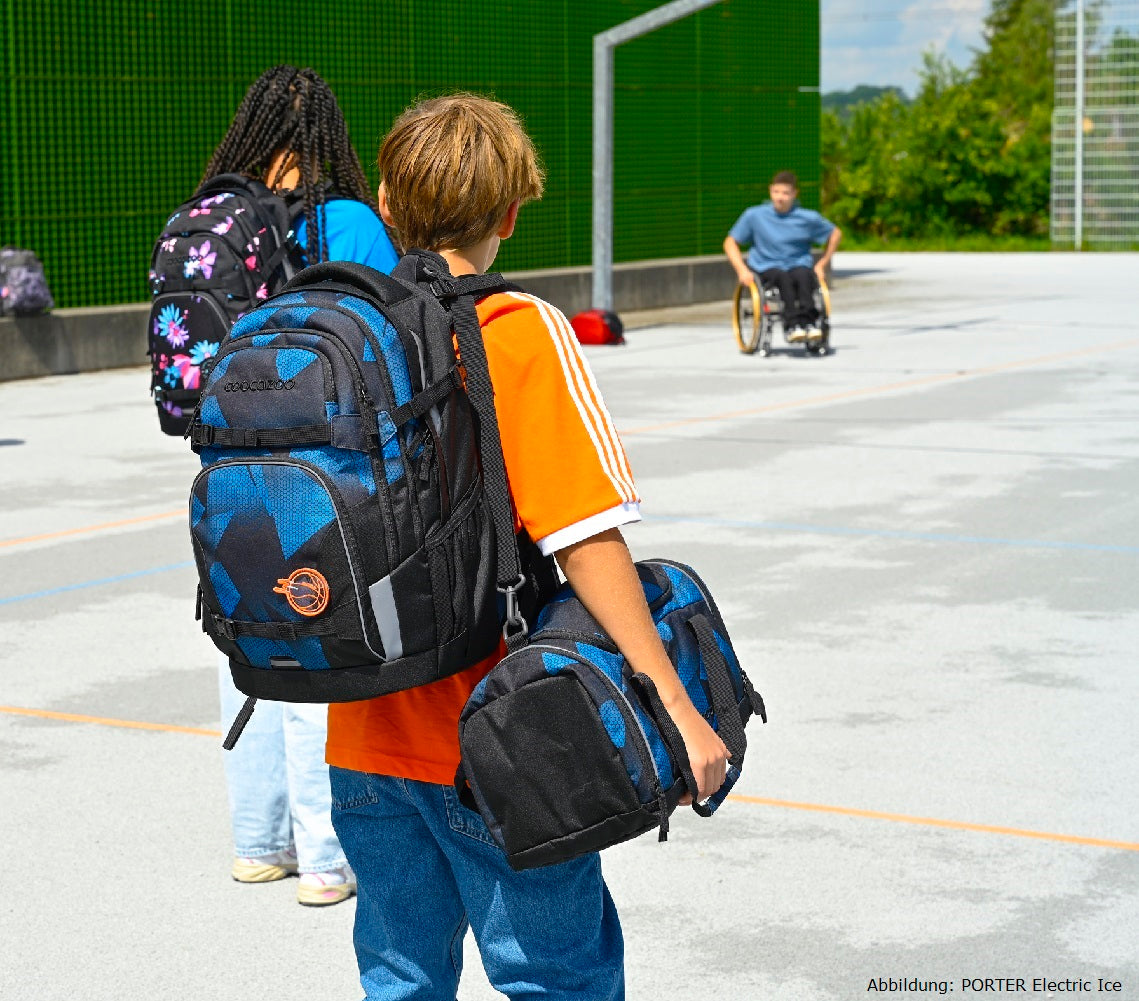 PORTER - das geräumige Multitalent. Geeignet ist der Rucksack ab der 5. Klasse. Der Schulrucksack verfügt über einen Stauraum von 30 + 5 Litern, der auf 5 Fächer aufgeteilt ist: zwei Hauptfächer mit einem Bücherfach, ein Organizerfach, eine Fronttasche und ein weiteres Frontfach. Ebenfalls verfügt der Rucksack über zwei Netz-Außentasche und einem Fach am Hüftgurt. Durch das Easy-Grow-System lässt er sich problemlos auf die aktuelle Rückenlänge einstellen (Körpergröße von 135 - 180 cm). Ein einfacher Drehmechanismus, mit entsprechender Skala, ermöglicht die Höhenverstellung der Schulterträger (während das Kind den Rucksack trägt). Durch die Riemen auf Schulterhöhe und die Kompressionsriemen an den Seiten lässt sich das Gewicht nah am Rücken verteilen. Um eine optimale Stabilisierung und Entlastung der Schultergelenke zu gewährleisten, verfügt der Ranzen über einen höhen- und längenverstellbaren Brustgurt. Durch diese Funktion wird das Gewicht gleichmäßig verteilt und die Schultern entlastet. Darüber hinaus sorgt die Pull-Forward Funktion des breiten Hüftgurtes dafür, dass das Gewicht des Ranzens auf das stabile Becken deines Kindes gelagert wird. Das atmungsaktive und gepolsterte Rückenteil ermöglicht eine gute Luftzirkulation. Durch den standfesten sowie gepolsterten Rucksackboden, bekommt der Rucksack einen festen Stand. Reflektierende Flächen sorgen für mehr Sichtbarkeit auf dem Schulweg. Für noch mehr Sicherheit am Schulweg kann ein zusätzliches LED-Stecklicht an der Schultasche befestigen werden. Die Herstellung erfolgt PVC-frei, sowie aus 40 recycelten PET-Flaschen (0,5 l). Wasserabweisend, Polyester mit 100% PFC-freier und bluesign-zertifizierter Beschichtung.