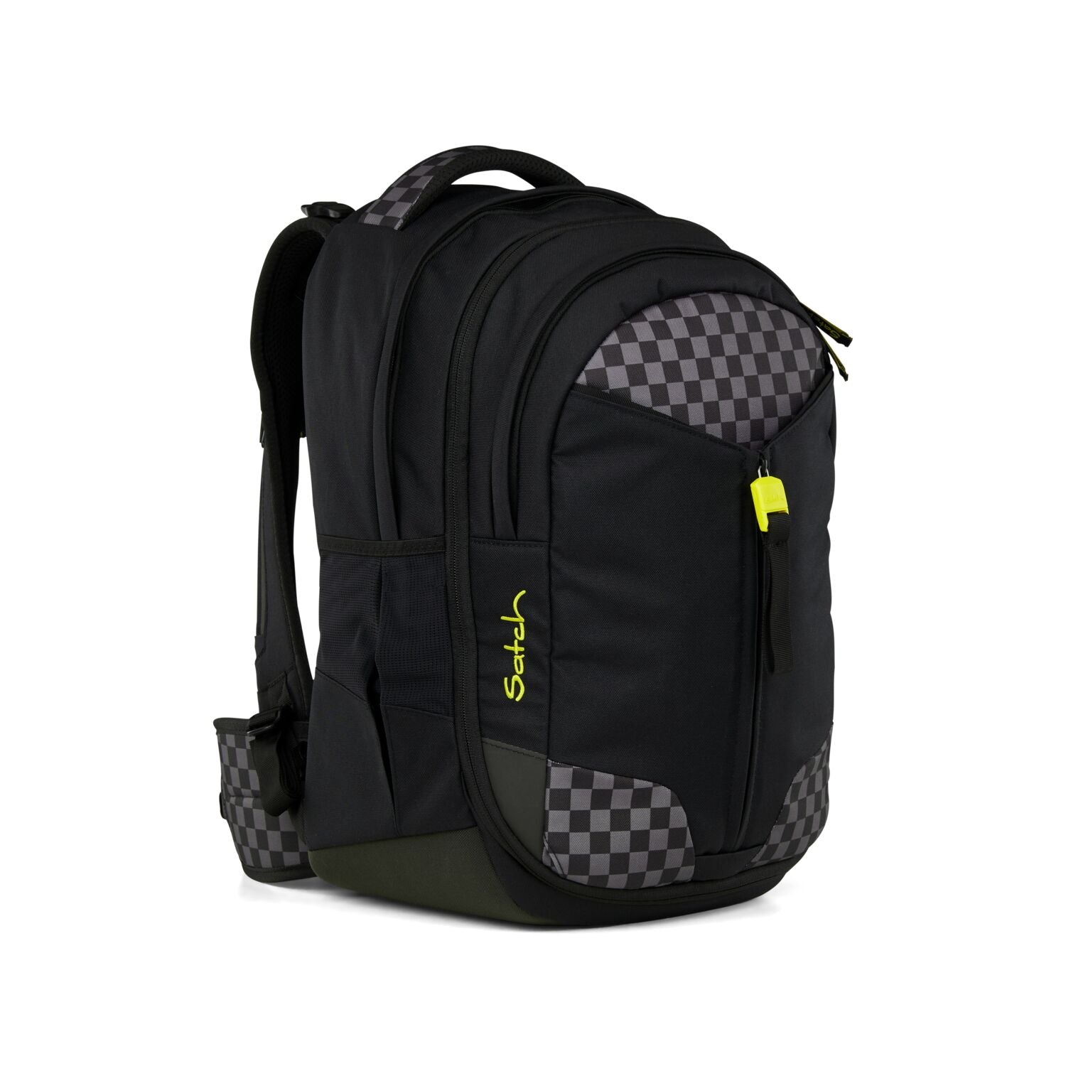 MATCH - der Kompakte von Satch ist nicht nur ergonomisch, sondern bietet auch sehr viel Platz. Aufgeteilt ist der Schulrucksack in zwei Hauptfächer, ein Organizer-Fach mit Laptop- und Tablet-Fach, eine Fronttasche und eine Seitentasche. Für noch mehr Stauraum sorgt die 5 Liter-Volumenerweiterung an der Vorderseite. Dank des Your-Size-System lässt sich der Rucksack an alle Körpergrößen zwischen 1,40 - 1,80 m anpassen und wächst somit stetig mit. Durch den höhen- und längenverstellbaren Brustgurt werden die Schultergelenke entlastet und der Schulranzen hat einen stabilen Sitz am Rücken. Der breite Hüftgurt ist ebenfalls in der Länge verstellbar und verlagert das Gewicht gleichmäßig auf dem stabilen Becken des Kindes. Die Schultergurte und das Rückenteil sind gepolstert sowie atmungsaktiv. Für noch mehr Sichtbarkeit und Sicherheit sorgen die Reflektoren, welche sich rundherum am Schulrucksack befinden. Ein robuster und standfester Boden sorgt dafür, dass der Ranzen auch den Belastungen des Schulalltags standhält. Aus 28 PET-Flaschen (0,5 l) hergestellt.