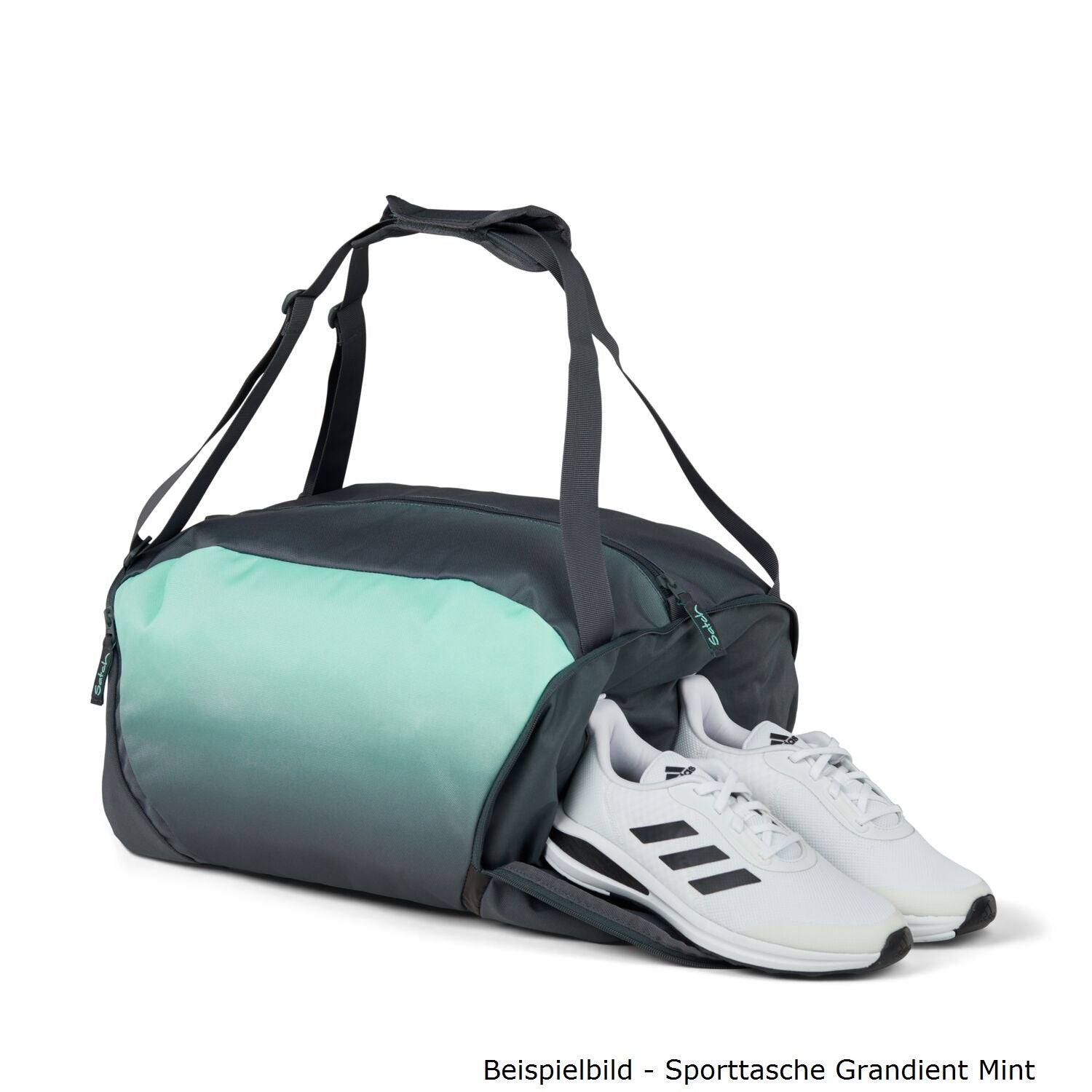 - Aufteilung: großes Hauptfach, Nass bzw. Schuhfach, kleines Reißverschlussfach auf der Rückseite