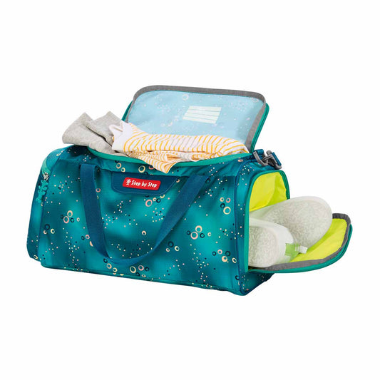 Ob für den Schulsport oder die Freizeit - die Step by Step Sporttasche für Kinder ist der ideale Begleiter für aktive Tage. Mit einem Gesamtvolumen von 13 Litern bietet sie ausreichend Platz für Sportkleidung, Schuhe, Trinkflasche und Geldbeutel. Im separaten Nasswäschefach lassen sich verschwitzte Shirts, schmutzige Sportschuhe oder feuchte Handtücher hygienisch und getrennt vom restlichen Inhalt aufbewahren - so bleibt das Hauptfach sauber und trocken. Zusätzlich sorgt ein seitliches Reißverschlussfach für Ordnung bei kleineren Gegenständen wie Handy, Haustürschlüssel oder Portemonnaie. Die Kinder-Sporttasche ist nicht nur funktional, sondern auch ergonomisch durchdacht: Der abnehmbare, verstellbare Schultergurt lässt sich individuell an die Körpergröße deines Kindes anpassen. Hergestellt aus strapazierfähigem, wasserabweisendem Material mit PFC-freier Beschichtung ist sie besonders langlebig.