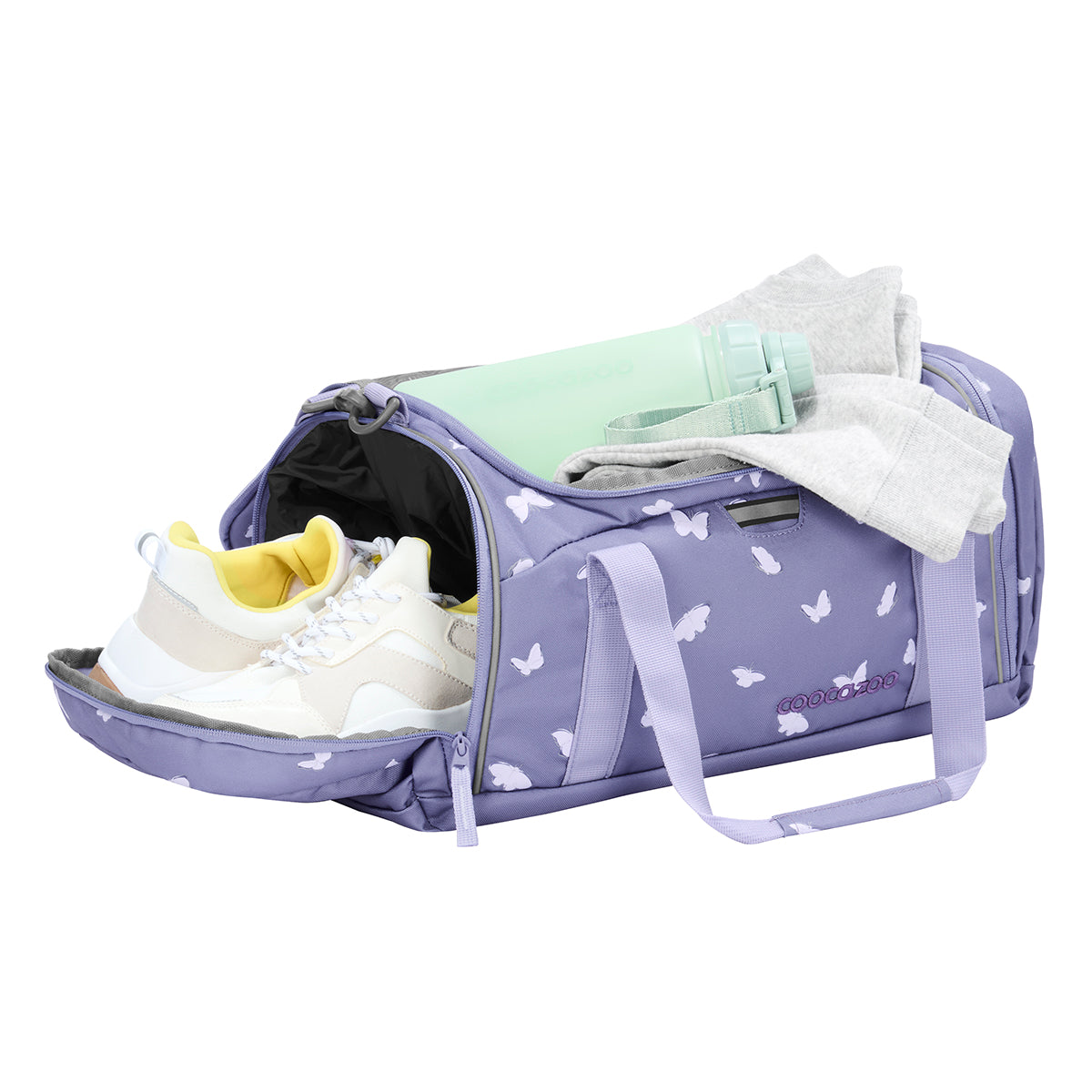 Ob zum Schulsport, Schwimmunterricht, Fußballtraining oder zum Baden - die Trainingstasche ist der ideale Begleiter für Schule und Freizeit. Mit 20 Liter Volumen bietet sie extra viel Platz und verschiedene Fächer sorgen für optimale Einteilung: Im großen Hauptfach kommt die Sportkleidung unter, und die Seitentasche ist ideal für kleinere Gegenstände, die schnell zur Hand sein müssen, z.B. Geldbeutel, Hausschlüssel oder Handy. Dank praktischem Nasswäschefach/Schuhfach lässt sich zudem gebrauchte von frischer Kleidung hygienisch trennen: Nach dem Sport erhalten dort verschwitzte Shirts, schmutzige Schuhe, feuchte Handtücher oder auslaufgefährdete Duschgels ihren eigenen Platz, und das Hauptfach bleibt sauber und trocken. So fällt deinem Kind daheim das lästige Ausräumen leichter, und die Kindersporttasche ist schnell wieder einsatzbereit. Der längenverstellbare und gepolsterte Schultergurt der Schulsporttasche lässt sich perfekt an die Größe deines Kindes und seine Tragevorlieben anpassen. Für mehr Sicherheit sorgen die reflektierenden Schmetterlinge, ein Reflektorband und der Reflex-Loop, an dem sich für noch mehr Leuchtkraft ein zusätzlichen LED-Anstecklicht anbringen lässt.